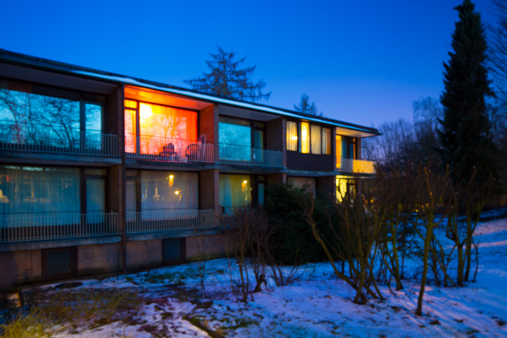 Das Gebäude verfügt über 54 Einzelapartments, fünf Doppelapartments sowie acht Zimmer. Alle Räume sind vollständig möbliert und mit Internetzugang ausgestattet. Küchengeräte, Töpfe und Geschirr sind vorhanden. Die Apartments sind mit Dusche/WC und einer Pantry-Küche ausgestattet, die Doppelapartments mit Dusche/WC und teilweise mit einer separaten Küche. Die Zimmer im Souterrain haben kein eigenes Bad, verfügen jedoch über ein Waschbecken. Duschbad und Toiletten befinden sich in dem gleichen Gang.