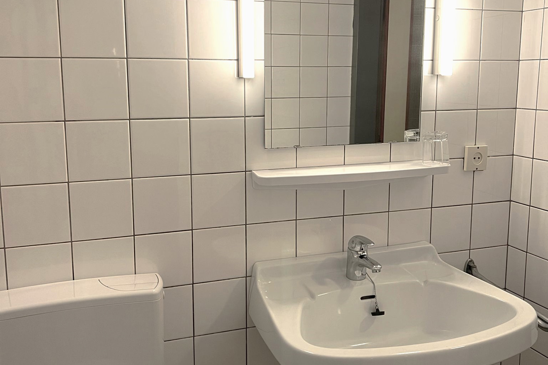 Gemeinschaftsdusche/WC – Waschbecken im Zimmer